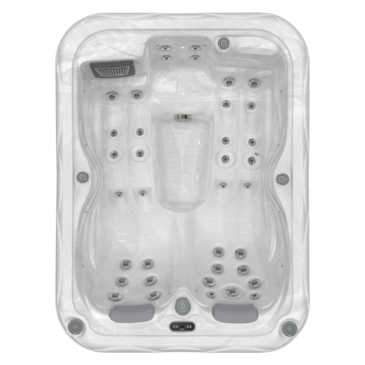 Cu două șezlonguri adiacente și o zonă de relaxare, piscina Mars este unică pe piața europeană. Cu fotoliul înclinabil mySEAT™, designerii noștri au eliminat disconfortul legat de înălțimea corpului, astfel încât clienții noștri mai scunzi și mai înalți se pot bucura de aceeași experiență de masaj. Cu o înălțime de 76 cm, acest model intră cu ușurință prin ușa unui apartament mediu, ceea ce îl face foarte ușor de introdus. Este suficient de spațios pentru a conține 37 de jeturi de masaj, dar suficient de mic pentru a încăpea aproape oriunde, fie că este vorba de o terasă umbrită sau de o baie ceva mai spațioasă.